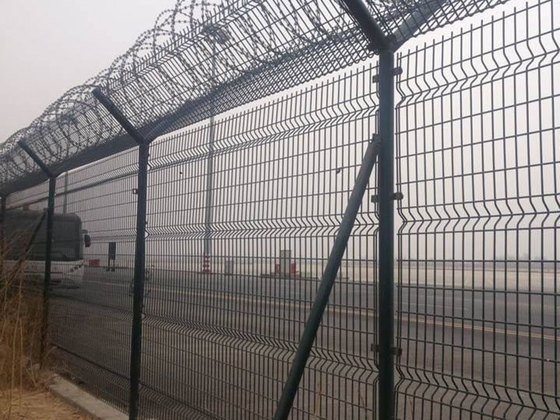 Y字形機(jī)場(chǎng)護(hù)欄網(wǎng),遠(yuǎn)遠(yuǎn)看去表面形式類似于一個(gè)大寫的Y字,因此得名于Y字型圍欄,是由V型支架立柱,加強(qiáng)型焊接片網(wǎng),安全防盜連接件和熱鍍鋅刀片刺網(wǎng)組成強(qiáng)度和安全防御性級(jí)別很高。近年來,被廣 泛應(yīng)用在機(jī)場(chǎng),軍事基地等高安全場(chǎng)所。其表現(xiàn)的防護(hù)、安全性能格外突出。